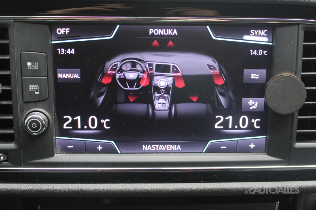 dvojzónová, Stop & Start System, tempomat, hliníkové disky, rozmer hliníkových diskov: 18, parkovacie senzory predné, parkovacie senzory zadné, ESP, ABS, ASR, počet airbagov: 6, rádio, s CD, elektrické okná 4x, elektrické zrkadlá, centrál, vyhrievané, posilňovač riadenia, dažďový senzor, hmlovky, multifunkčný volant, hands free, lakťová opierka, senzor tlaku v pneumatikach, palubný PC, poznámka: SEAT DRIVE MODE, AMBIENTNÉ OSVETLENIE INTERIÉRU, LED matrix, svetelný senzor, isofix, predná, vyhrievané sedadlá predné, zadná